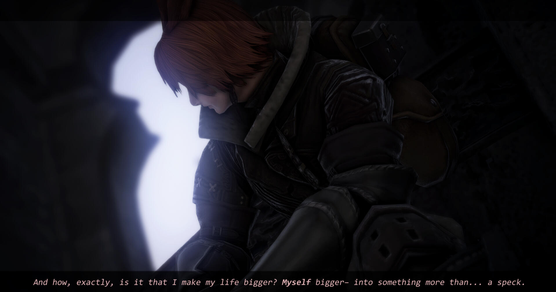 A freckled kit goes born to a tribal off-shoot in Coerthas. It's important, as they diminish by the year. Only, it turns out too soft and too messy a thing to go put in the woods. Too weak of heart to protect its home, too weak of body to protect itself. So they hope for a woman, but it turns out a boy.Fourteen years of small acts of unkindness whittle away at his heart, eyes searching past treelines for someplace to romanticize. It comes through the origins of a friend— Ala Mhigo— and so they depart.It's a failure, one from which he returns alone. The glen they once shared now host a grave.Cycles pass in a haze, until soon his one anchor— his brother— leaves to become the ward he himself wasn't destined to be. Left with the bitterness of a promise unmade, soon he too, makes a second escape. One he doesn't come back from, and that he cannot undo.