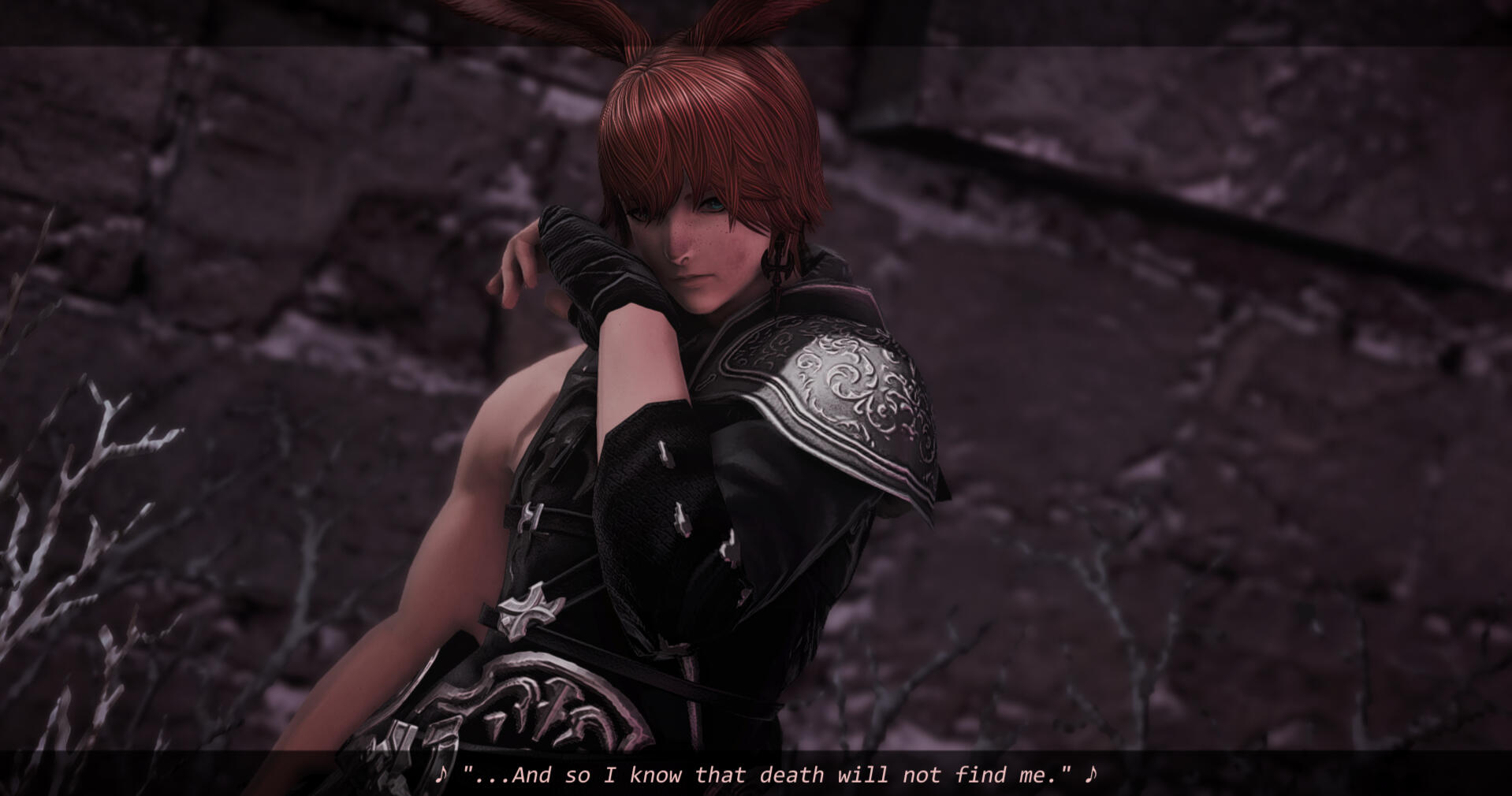 A freckled kit goes born to a tribal off-shoot in Coerthas. It's important, as they diminish by the year. Only, it turns out too soft and too messy a thing to go put in the woods. Too weak of heart to protect its home, too weak of body to protect itself. So they hope for a woman, but it turns out a boy.Fourteen years of small acts of unkindness whittle away at his heart, eyes searching past treelines for someplace to romanticize. It comes through the origins of a friend— Ala Mhigo— and so they depart.It's a failure, one from which he returns alone. The glen they once shared now host a grave.Cycles pass in a haze, until soon his one anchor— his brother— leaves to become the ward he himself wasn't destined to be. Left with the bitterness of a promise unmade, soon he too, makes a second escape. One he doesn't come back from, and that he cannot undo.