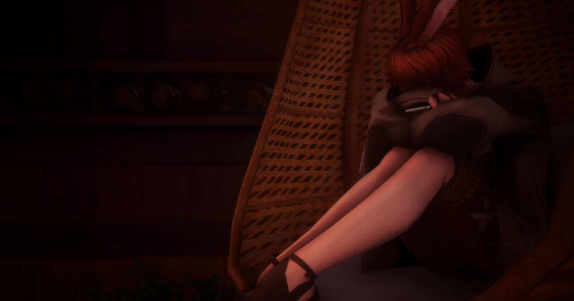 Frosted windows weep meeting the morning sun. When the winds lay still and the clouds stay parted, Coerthan hostility turns to quiet beauty. Crystalline and perfect, rather than another plain tainted through war. Imperial scars have gone buried beneath the snow, love turned spite left as draconic remnants; frozen reminders of the lengths to which grief had gone.Inside woodworks rarely traveled, timber has gone fashioned into a humble cabin. Winter shrubs stand potted by the doorframe, saplings struggling to take root. Rime makes sneaking peeks into a homelife Seneca has yet to see a tricky thing. But through topmost edges, he may spy snippets of sentimental clutter. Teabags not stowed away, knitwork unfinished and a gramophone with only one record.Dawn shines through the upper level to douse Devon in its light, still fast asleep amidst a loft of boxes not yet unpacked. The clothes of yesterday have gone folded onto a nearby chair, his covers kicked aside and pelts slowly drooping to the floor.A linen shirt that drapes past half his thigh has turned too warm, and yet he insists on laying buried amidst both pillows and duvets. In place of other hearts to seek, one such bundle has gone claimed and pressed against his chest. The mess, the closest echo to a childhood surrounded by bodies soft and warm.